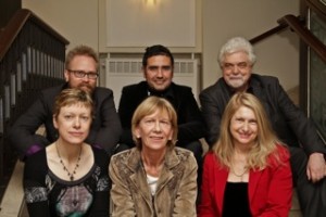 Ekumeniska juryn. Övre raden: Mikael Larsson, Edgar Rubio, Rolf-Ruediger Hamacher. Undre raden: Alyda Faber, Angela Obert (ordf), Cynthia Chambers.
