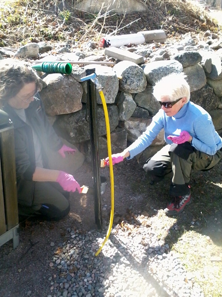 Men, i veckan lyfte vi blicken och gav redskapsställen och vattenposterna i Veckholms pastorat ett riktigt ansiktslyft – i form av svart färg.