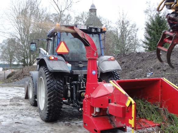 Under föra veckan hyrde kyrkogårdsförvaltningen en flistugg. Med hjälp av den tillverkade vi vår egen täckbark, av avfall från beskärningsarbeten.