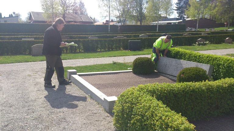Just nu håller kyrkogårdsförvaltningen på att inventera alla gravvårdar på S:t Olofs kyrkogård, Vårfrukyrkogården samt Enköpings-Näs och Teda kyrkogårdar.  Inventeringen görs för att säkerställa så alla gravvårdar är korrekt förankrade, inte lutar för mycket och håller för ett tryck om 35 kilo enligt gällande riktlinjer.
