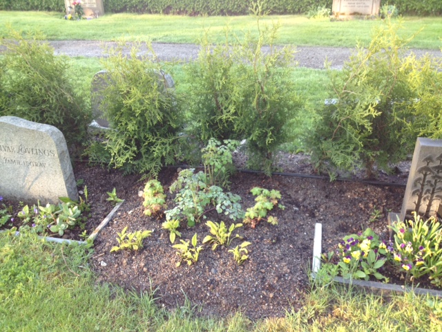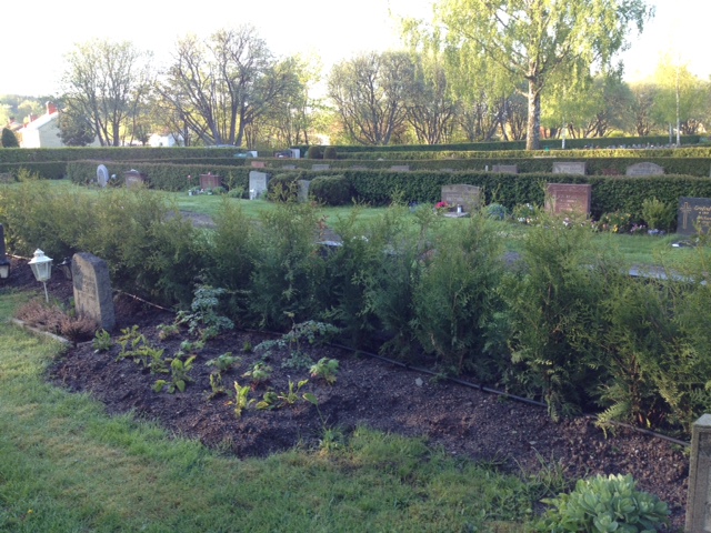 Under våren har en av tujahäckaran på S:t Olofs kyrkogård bytts ut mot en ny, i samband med det planterades det perenner som avgränsare mellan gravplatserna.