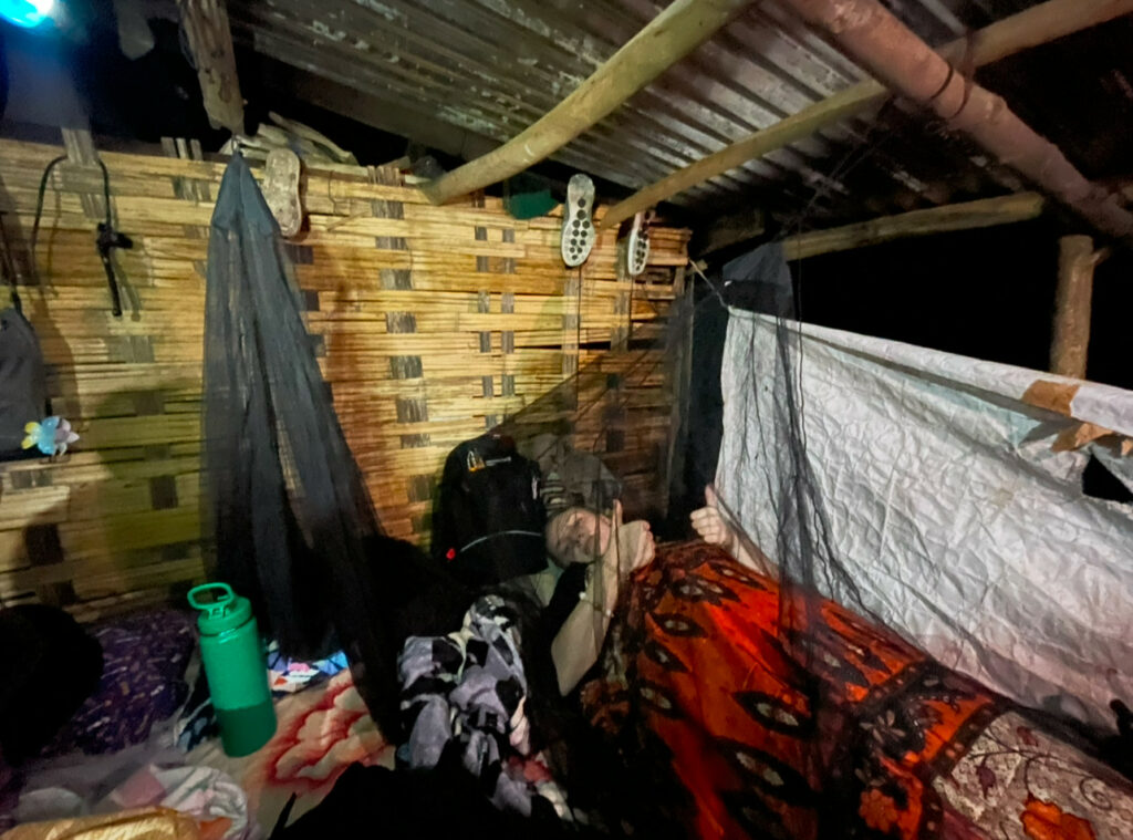 Vi spenderade två dagar och en natt hos dem, med bakgrundsljud av skratt, grodsång, regn och sprakande eld. Ett oväntat lugn infann sig trots att de säkerhetsåtgärder vi aktivt använder till vardags var högst frånvarande.