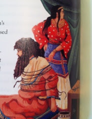 På bilden gör hon något av sina misslyckade försök, det var ju i håret Simsons styrka satt. Jag skrev nyss lite om hår hos Simson och andra ”nasirer” (läs ”Nyklippt och några långsökta bibelreferenser”). Läs gärna hela historien om Simson i domarboken kapitel 13-16. En spännande och på många sätt förbryllande historia.
