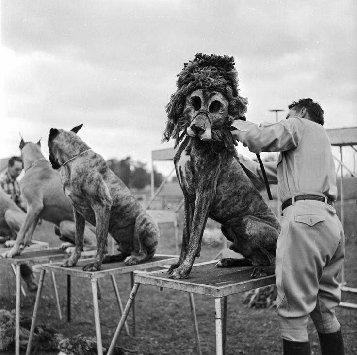 | Det var för dyrt med riktiga lejon så här klär de ut hundar. Det är viktigt att man inte ska behöva vara någon annan för att vara älskad, speciellt i nära relationer. |