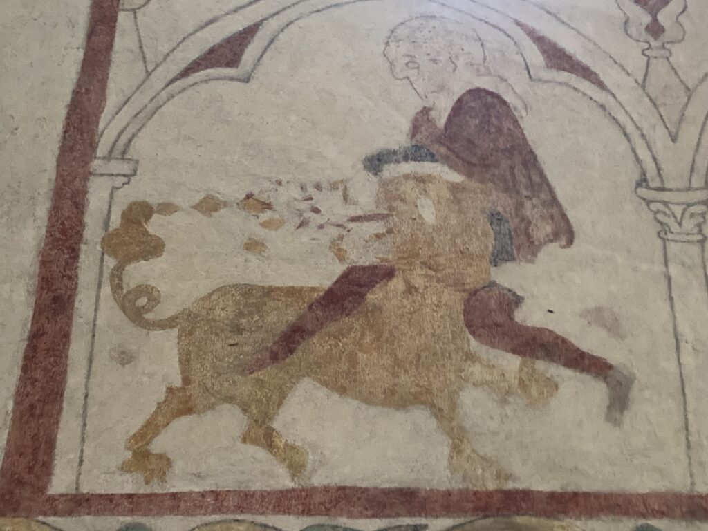 Jag blev förvånad över hur vanligt det var att stöta på Simson från gamla testamentet avbildad på olika ställen i de gotländska medeltidskyrkorna. Han platsar inte riktigt i barnens bibel så det kan hända att han inte är så känd bland alla men lika sant som det är att han är bibelns egen Herkules så är han också en väldigt tveksam moralisk figur. Varför vill man ha med honom?