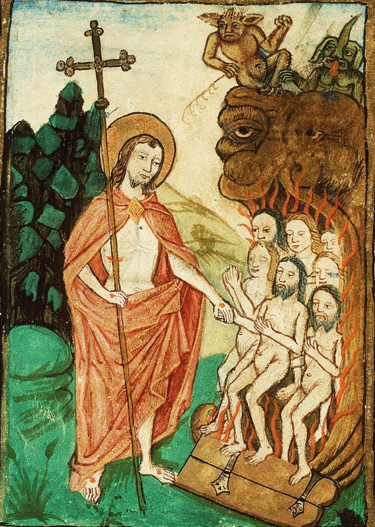 På bilderna dödar Simson ofta lejonet på det förmodligen opraktiska sättet att han bänder isär käkarna på det med bara händerna. Min (goda?) gissning är att konstnären låter Simson illustrerar hur Jesus senare besegrar döden och/eller djävulen och bryter upp gapet så att dess fångar kan komma ut. Såna helvetesmunnar ser man ofta i medeltidskonsten.