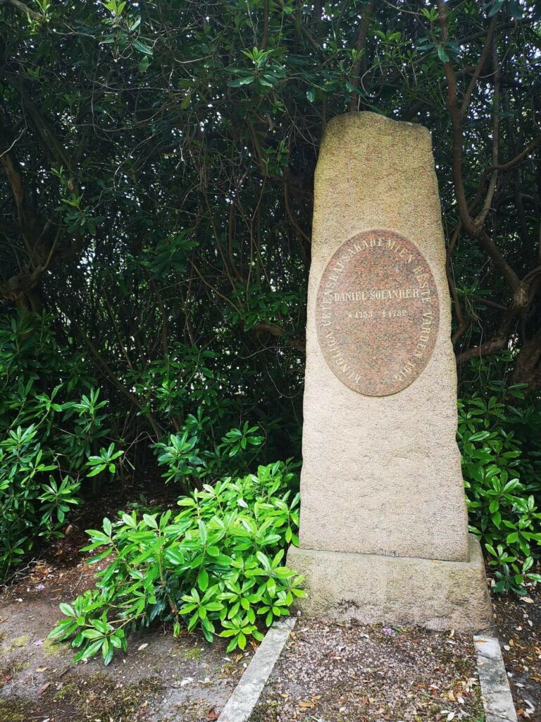 Daniel Charles Solander (1733-1782), en av Linnés lärljungar, deltog i Cooks första världsomsegling. Solanders minnessten är donerad av Svenska Vetenskapsakademien.
