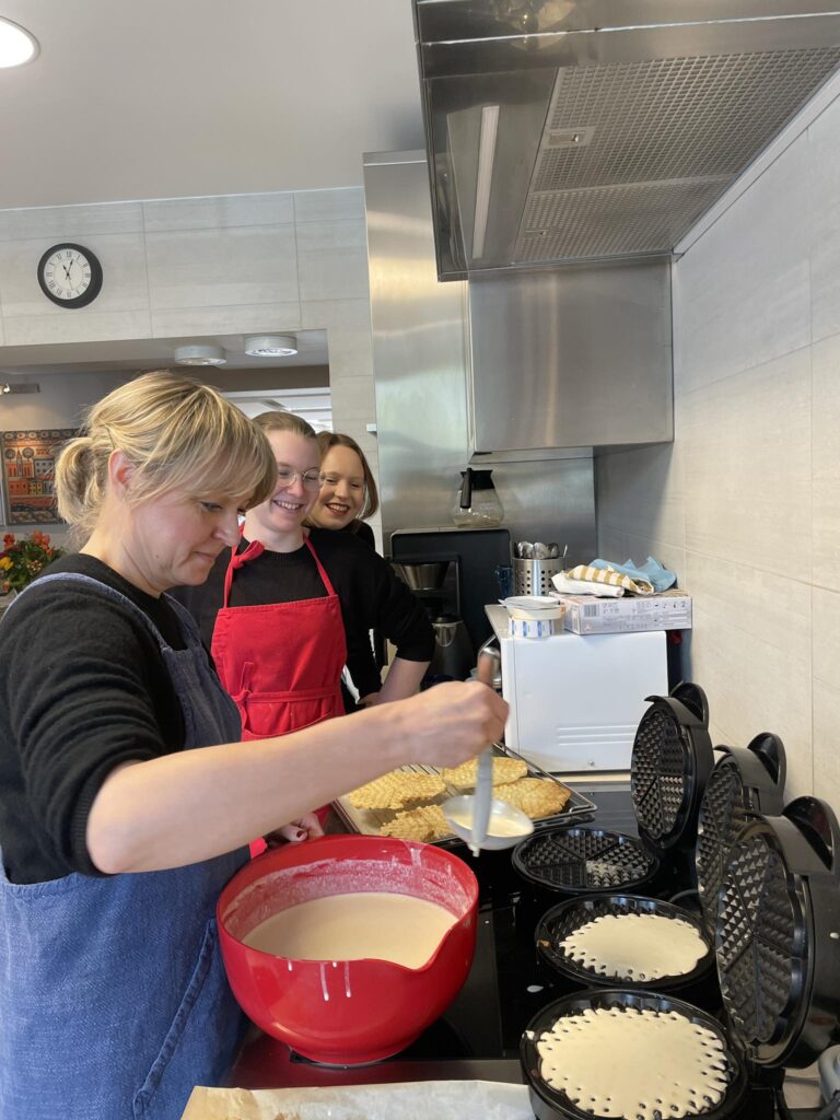 – Det är annorlunda här. Man måste tänka mer ekonomiskt, och saker fungerar inte riktigt likadant som hemma. Här är caféet i kyrkan det största fokuset. Jag bakar bullar, lagar mat, fixar till luncher… allt möjligt. Det är så viktigt med ideella här. Vi är ett litet arbetslag och hade det inte varit för volontärerna hade det inte gått runt. Hemma finns mycket mer personal. Det gör att man får rycka in i allt. Man blir verkligen allt-i-allo.